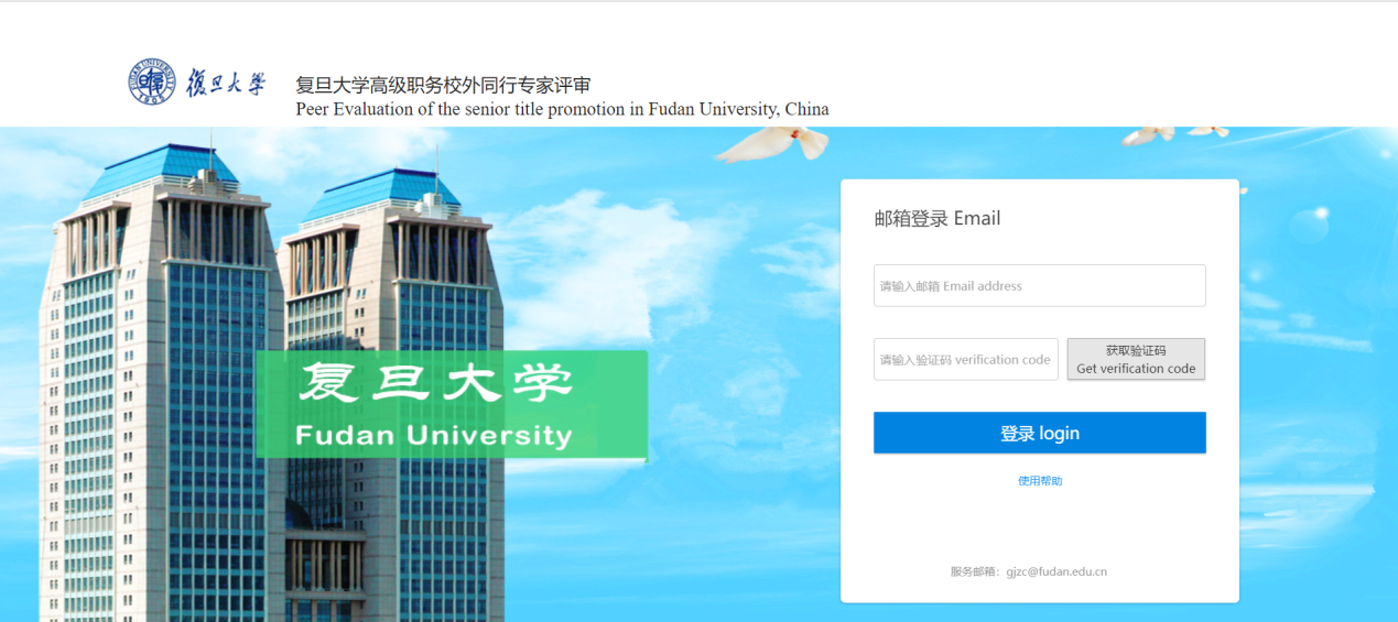 2、输入邮箱,点击【获取验证码Getverificationcode】按钮,系统会发送验证码至输入的邮箱,填入邮箱中的验证码,点击【登录login】按钮,即可登录系统进行评审。