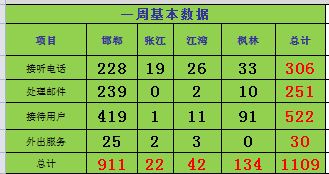 运行服务值班数据统计周报【2011年10月31日-11月06日】