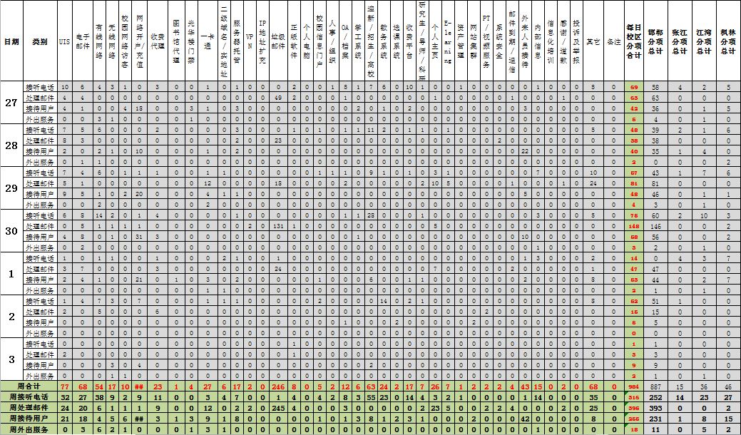 运行服务值班基本数据如下所示: