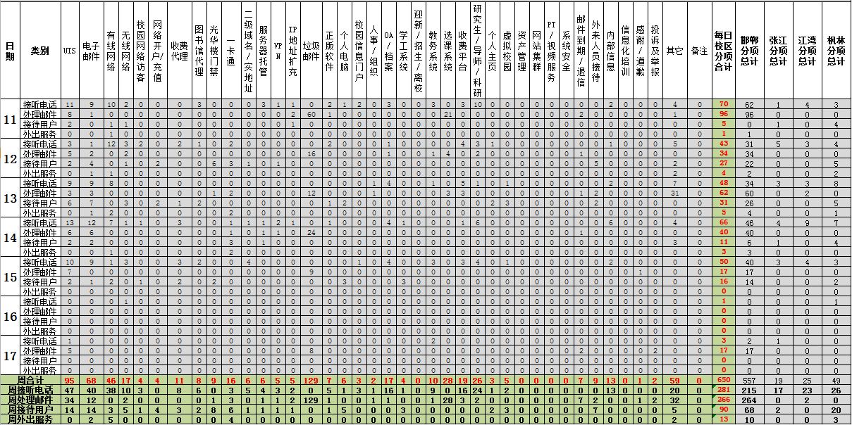 运行服务值班数据统计周报【2011年04月11日-04月17日】