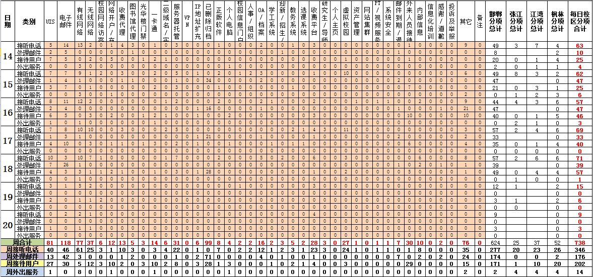 运行服务值班基本数据如下所示: