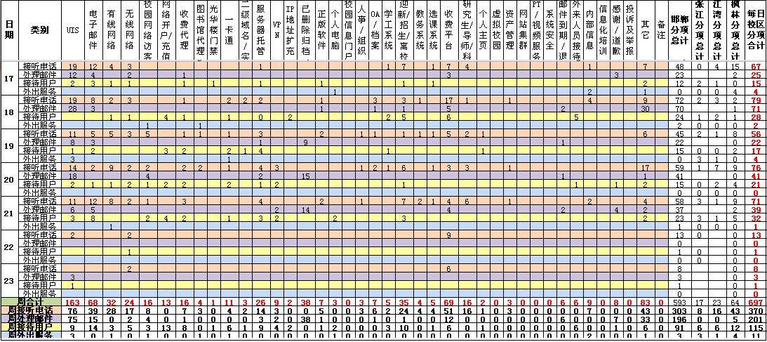 运行服务值班数据统计周报【2011年01月17日-01月23日】
