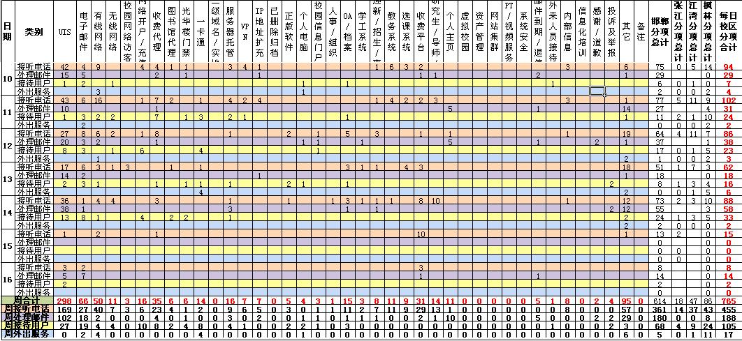 运行服务值班数据统计周报【2011年01月10日-01月16日】