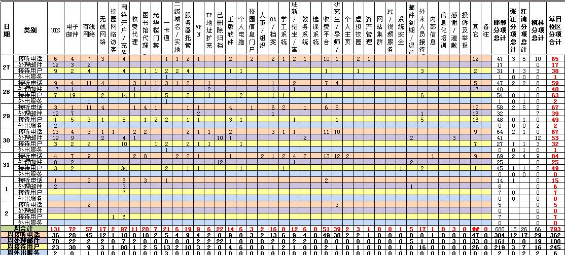 运行服务值班基本数据如下所示: