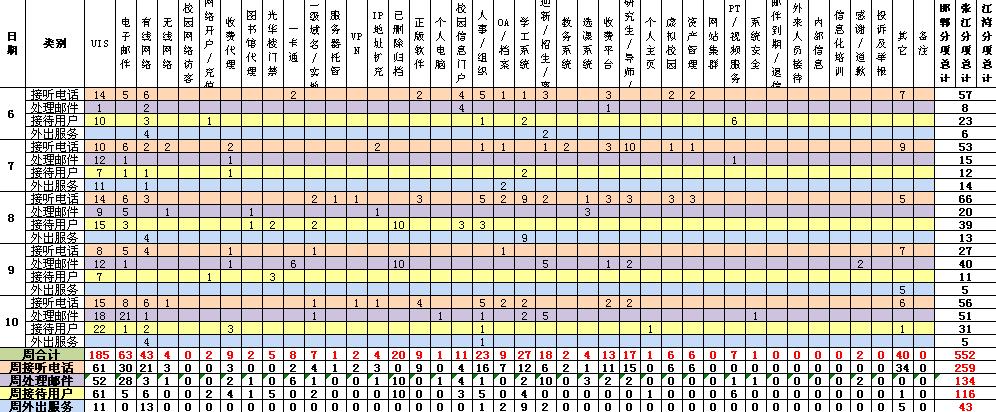 运行服务值班数据统计周报【2010年12月06日-10日】