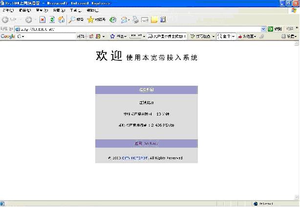 3. 点击“注销”后,将告知已使用时间和使用流量(如下图),若您不小心关闭了注销窗口或由于使用了禁止弹出窗口的浏览器外挂软件,可直接访问http://10.6.0.250/F# 进行注销。如果用户没有访问动作,在30分钟后也会自动注销。