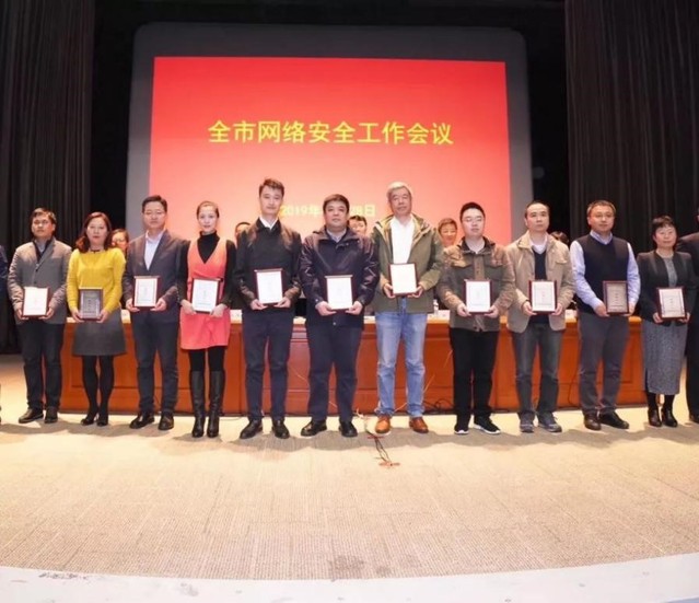 2019年11月28日,中共上海市委网络安全和信息化委员会办公室于上海图书馆报告厅召开了全市网络安全工作会议。会议深入贯彻习近平总书记重要讲话精神,落实了市委网信委第一次会议要求,对2019年度全市网络安全工作进行了总结,表彰2019年度网络安全先进集体及个人,不断推动我市网络安全工作再上新台阶。会议中,市委网信办兼职副主任单位市公安局、市通信管理局以及国家计算机网络应急技术处理协调中心上海分中心分别围绕各单位的网络安全工作举措进行发言。同时,会议表彰了嘉定区委网信办等15家网络安全工作先进单位,上海计算机软件技术开发中心等5家先进支撑单位以及松江区委网信办干部朱佳毅等15名先进个人,其中复旦大学信息办王亮老师荣获“2019年度全市网络安全工作先进个人”。松江区、上海浦东发展银行有限公司、上海交通大学医学院附属第九人民医院代表先进单位作了交流发言。