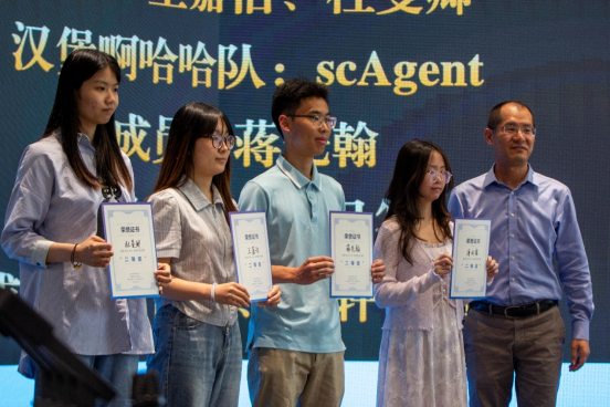 本次颁奖典礼邀请了获得一等奖和二等奖的四支队伍分享他们的AI智能体应用作品。分别是:数院大神志愿服务队的李昕昊同学分享“登堂入释——定制你的数学个性学习管家”、Book思议团队的王嘉怡同学分享“旦小寻(失物招领AI+小助手)”、汉堡啊哈哈团队的蒋先翰同学分享“scAgent”、小旦帮团队的唐雨露同学分享“小旦答”。