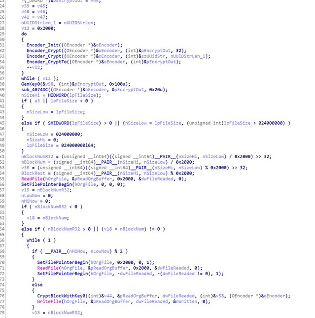 病毒含有勒索必要的资源,并且加密存在于病毒中,病毒代码通过解密用于之后的勒索操作,此举意在逃避安全产品的静态检测: