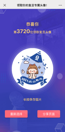 创新服务增强校园人文关怀,促进迎新服务“年轻化”。星空捕鱼真金版游戏下载今年共推出9种定制版“复旦蓝”头像框。目前,已有3000多位FDUer领取了复旦专属头像。