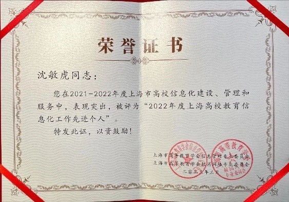 经专家评审,星空游戏app安卓沈敏虎同志被评选为“2022年度上海高校教育信息化工作先进个人”。