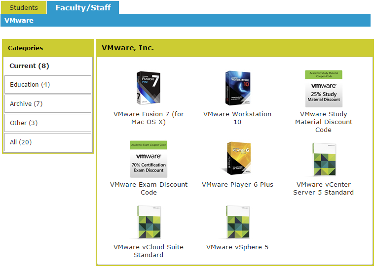 VMware是业界领先的虚拟化软件厂商,复旦大学已申请成为VMware学术计划成员,在校师生可以在遵循相关协议的前提下免费使用VMware学术计划内所包含产品,其他更多详情请参阅https://labs.vmware.com/academic。